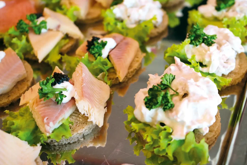 Edle Häppchen für eure Gäste: Unsere Canapés sind perfekt für feierliche Anlässe, Empfänge oder den stilvollen Snack zwischendurch. Liebevoll belegt, kunstvoll dekoriert und immer ein Highlight – von Lachs und Käse bis zu winterlichen Spezialitäten wie Enten- und Gänsebrust.